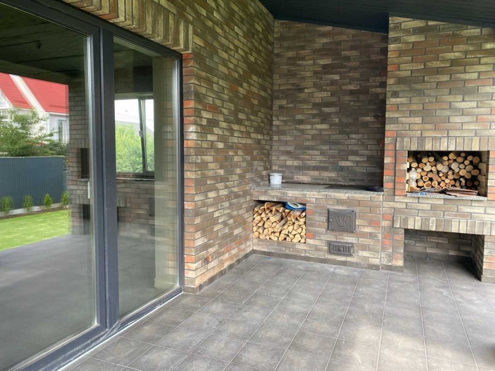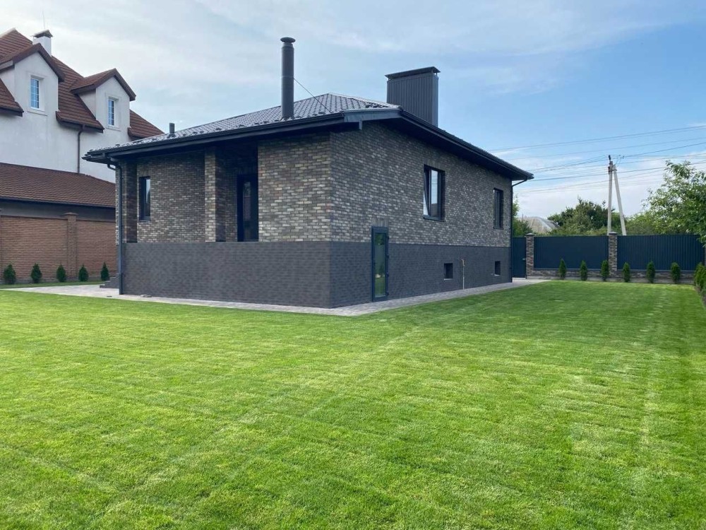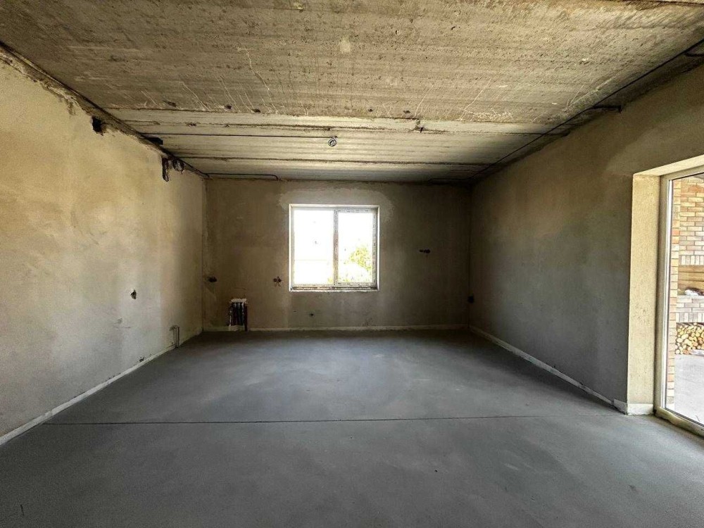 Будинок утеплений, з клінкерною цеглою, перекриття панельне, дах з металочерепиці, вікна REHAU. Всередині – машинна штукатурка, стяжка, розведено електрику, інтернет, сигналізацію, воду, каналізацію. Тепла підлога, виходи під радіатори. Газ, світло (три фази, 18 кВт), заземлення, вихід під електрокотел і генератор.