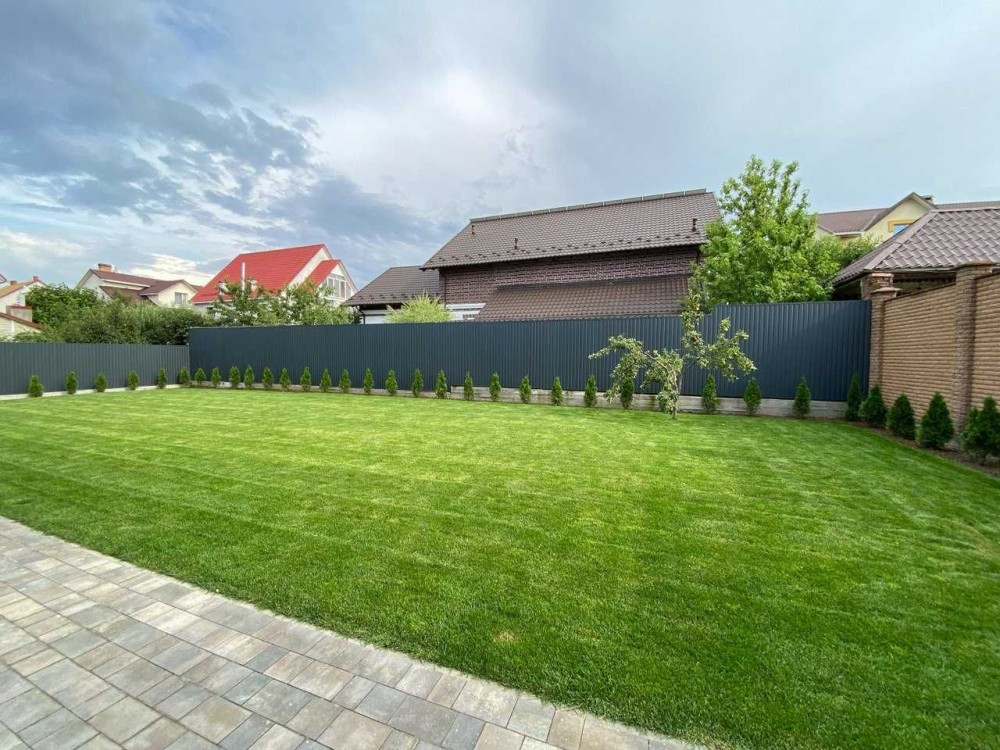 Ділянка 8 соток з пропискою, паркан, автоматичні ворота, тротуарна плитка, полив, газон, озеленення. Територія впорядкована, встановлено дренаж дощової води, облаштована тераса 18 м²