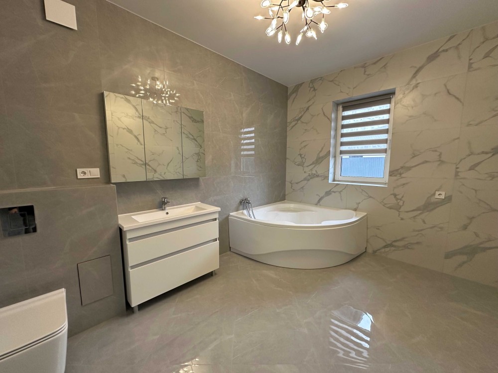 Будинок дуже теплий та енергоефективний (стіни з керамоблоку + 200 мм утеплення). Підключено газ, світло 10 кВт (лічильник день/ніч), свердловина. Величезний плюс для приватного будинку — центральна каналізація.