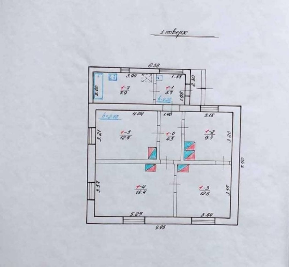 - 4 кімнати + ґанок, в якому розташована кухня та ванна,