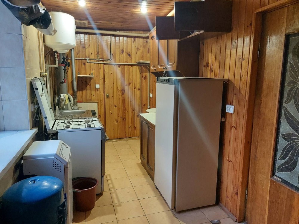 Дом в с.Заболотье, Шосткинский район. Общий вид с огорода (фото 1) Слева деревянный сарай ~ 24м2 (фото 2) Возле сарая погреб (фото 3) Летняя кухня ~ 10м2 (фото 4) Возле летней кухни есть скважина под глубинный насос (фото 5) Жилой дом ~ 50м2 (фото 6) Прихожая (фото 7-8) Коридор (фото 9) По коридора прямо сразу веранда (фото 10-11) Налево по коридору проходная комната с половиной грубки, двумя столами и счетчиком электроэнергии (фото 12-15), дальше комната со второй половиной грубки (фото 16-19) Направо по коридору кухня с печкой и лежаком (фото 20) Пол везде хороший. Долгов нет. Есть сад и плодовые деревья. Состояние все на фото.