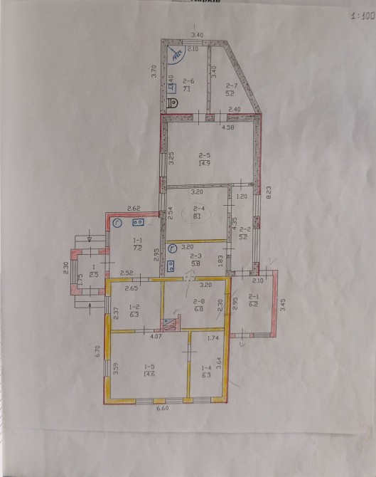 Продам отдельно стоящий частный дом район Новой Баварии по ул.Урожайной.Дом общей площадью 97м2, участок на 6 соток, имеются предомовые постройки, навес-гараж и.т.д.Непосредственно дом и меет два входа, одна часть которая меньшая в ней жилое состояние, МПО,электро котел, центральное водоснабжение,кухня коридор и две комнаты.Вторя часть которая большая состояние под ремонт, имеет два коридора, кухню,столовую и три комнаты, одна из этих комнат планировалась под санузел.,выходы под канализацию сэптик,уже выкопана и выложена сливная яма., также стоит газовый котел, камин, водоснабжение .ц26 т.д.Алексей.PS:Продается как целый дом, кадастра нет.
