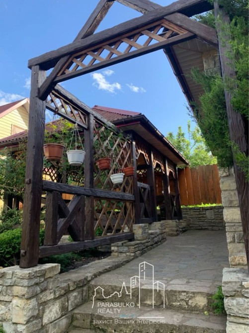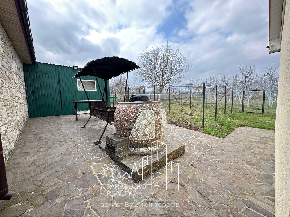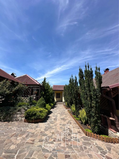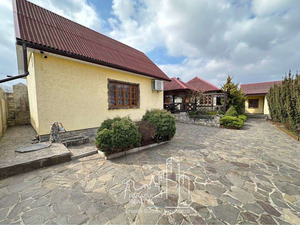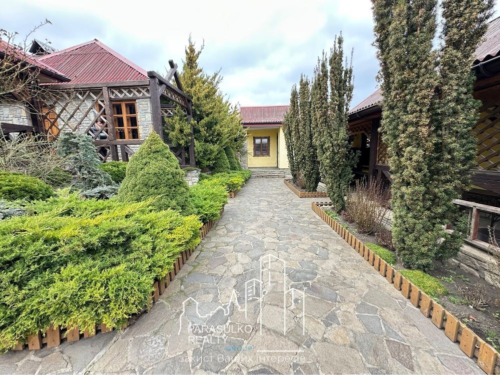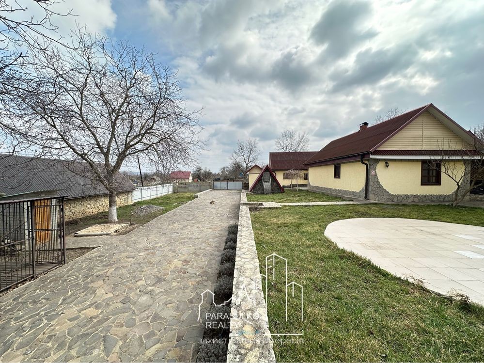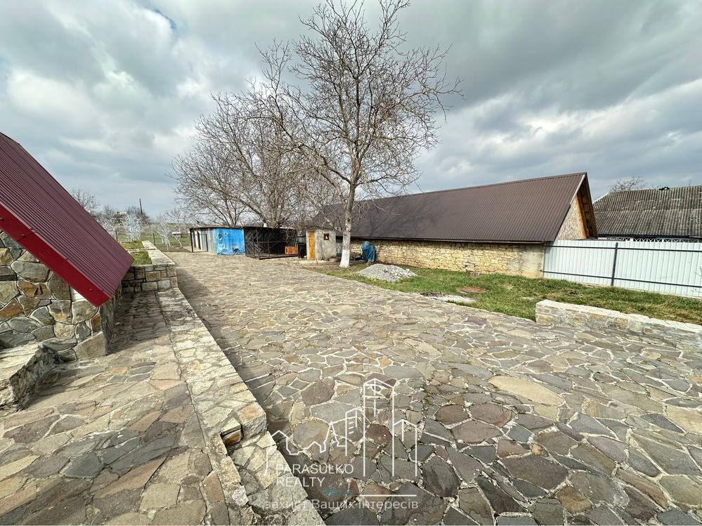 Доріжки: Вся територія викладена натуральним каменем, що додає естетики та забезпечує комфорт пересування.