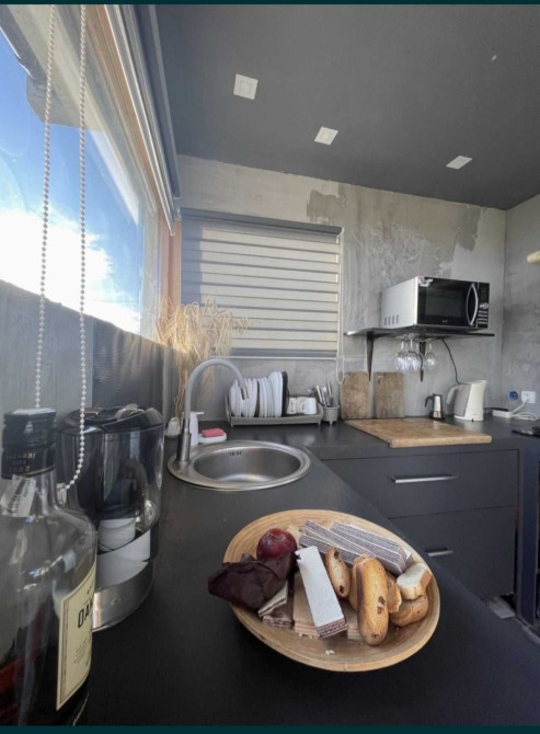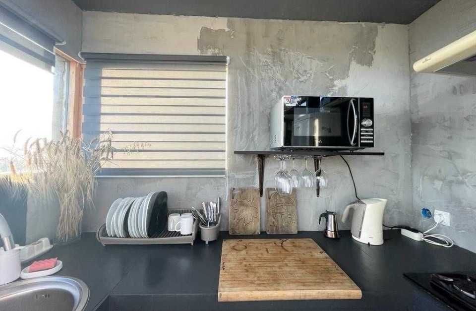 В доме 2 спальни и большая кухня студия.