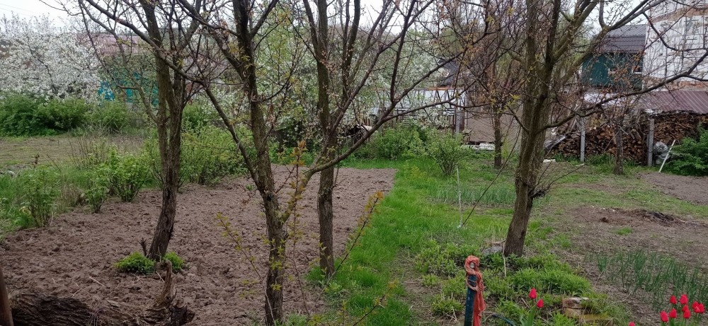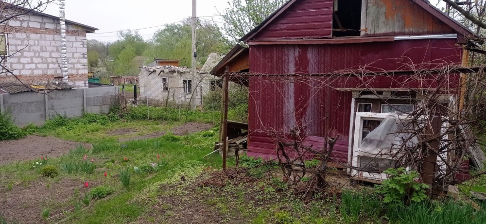 Земельный участок обрабатывался ежегодно.На территории есть сарай и дом (требует ремонта после прилёта