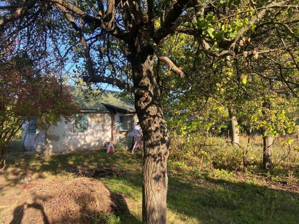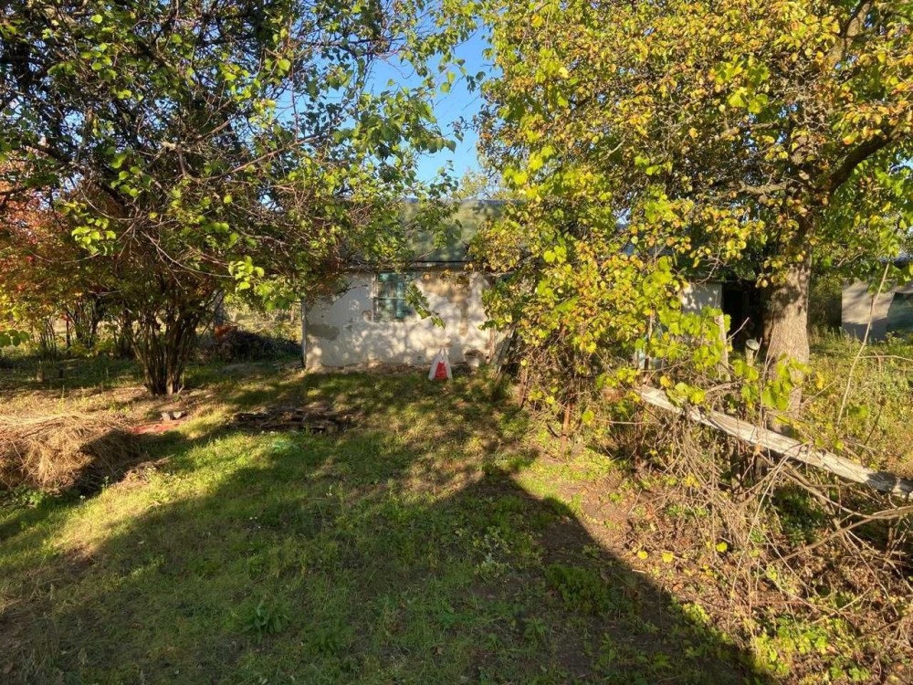 Дом в с.Заболотье, Шосткинский район. Общий вид с огорода (фото 1) Слева деревянный сарай ~ 24м2 (фото 2) Возле сарая погреб (фото 3) Летняя кухня ~ 10м2 (фото 4) Возле летней кухни есть скважина под глубинный насос (фото 5) Жилой дом ~ 50м2 (фото 6) Прихожая (фото 7-8) Коридор (фото 9) По коридора прямо сразу веранда (фото 10-11) Налево по коридору проходная комната с половиной грубки, двумя столами и счетчиком электроэнергии (фото 12-15), дальше комната со второй половиной грубки (фото 16-19) Направо по коридору кухня с печкой и лежаком (фото 20) Пол везде хороший. Долгов нет. Есть сад и плодовые деревья. Состояние все на фото.