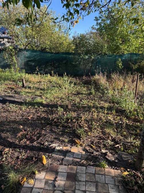 участок огорожен сеткой;