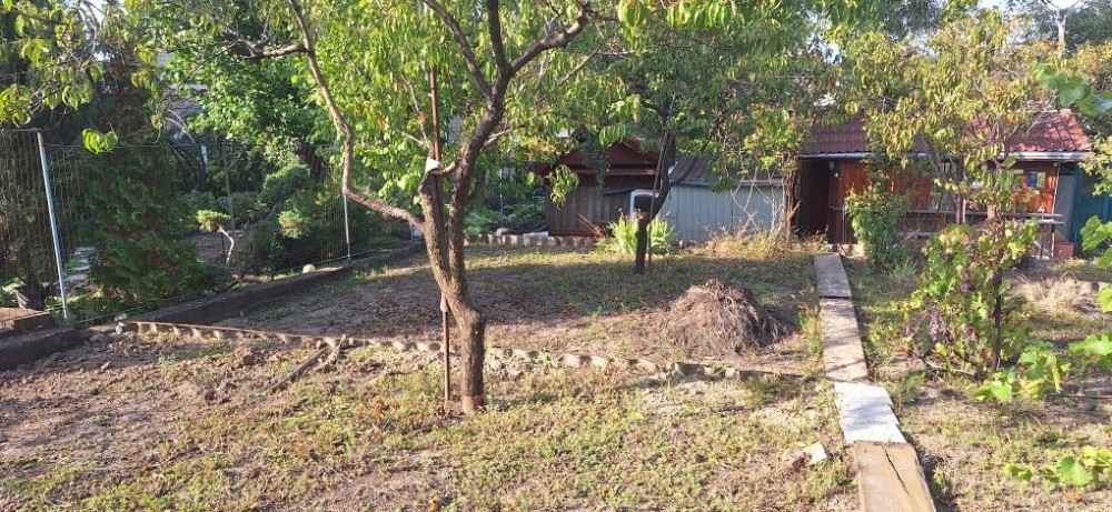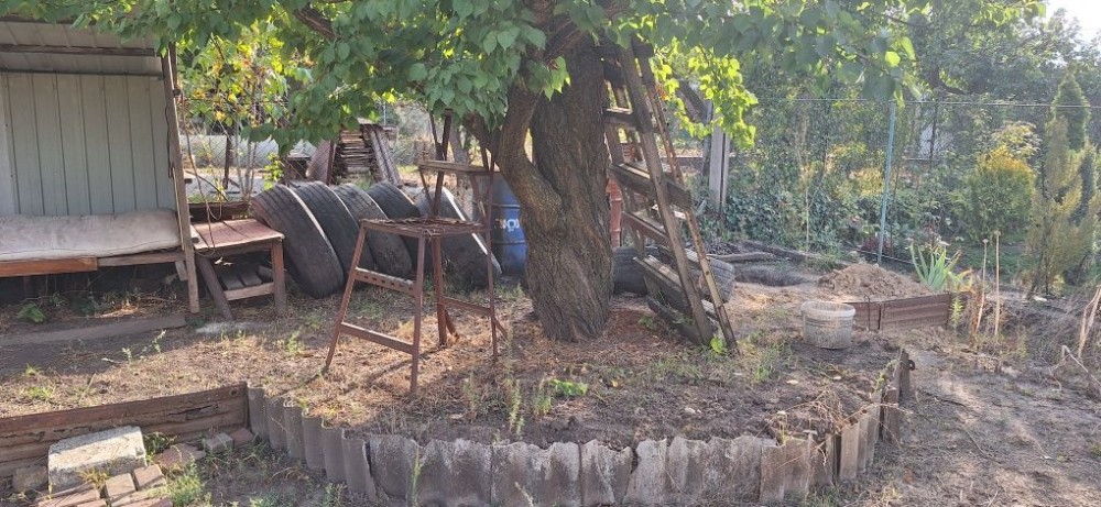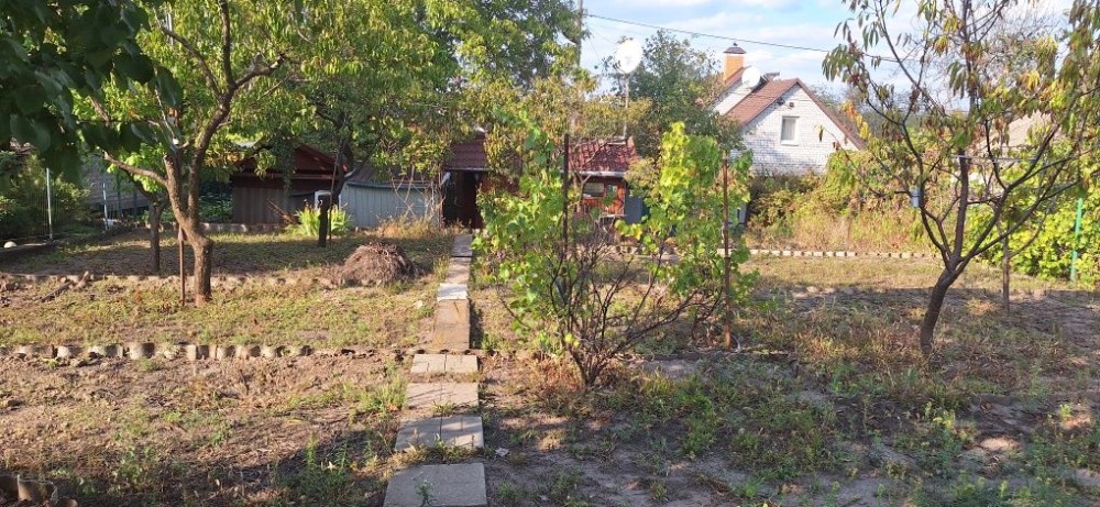 На участке деревья, виноград, есть место под посадку овощей