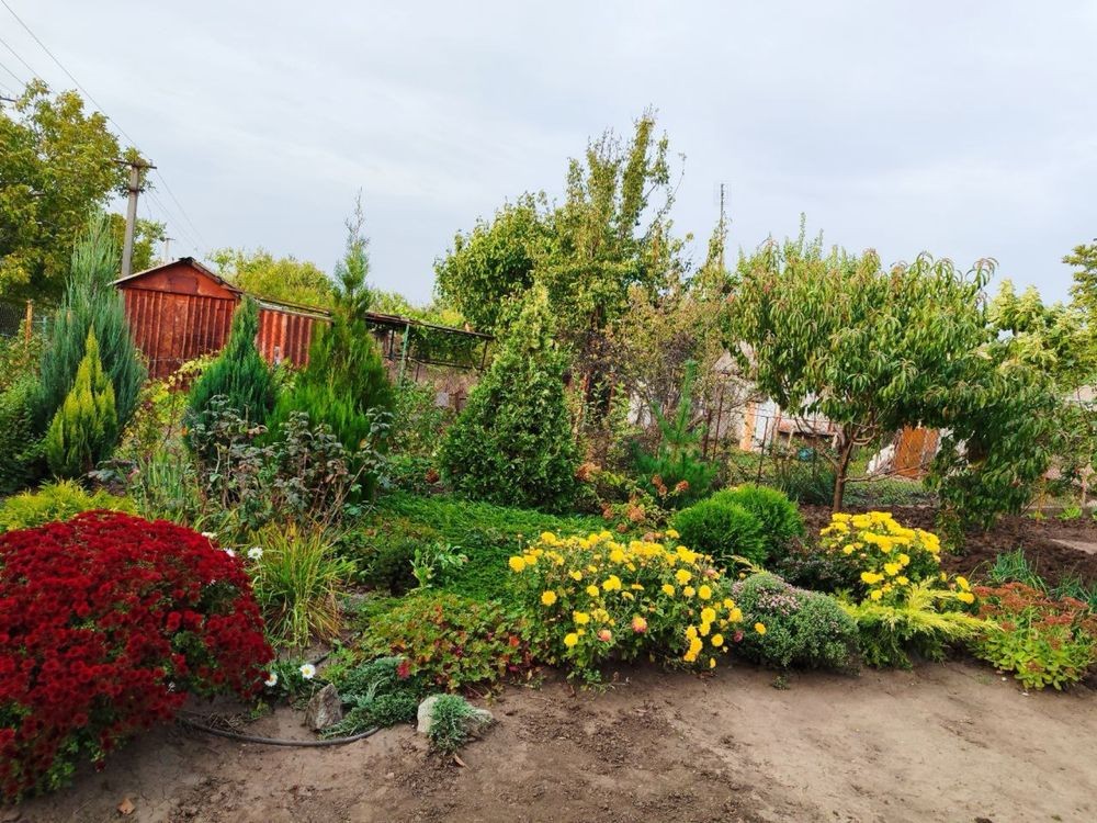 На ділянці ландшафтний дизайн : 6 туй, 3 кипарисовика, ялівці, декоративні рослини, квітуча гліцинія, самшити, лаванда, півонії, півники, хости, лілейники, троянди. Плодови дерева: груша, вишня, 3 яблунькі, слива, персик, чорна смородина, малина, більше 10 кіщів сортового і винного винограду. Газон. На території мається мангальна зона, з пічкою під казан, літній душ, літній туалет, приміщення для хозінвентаря.