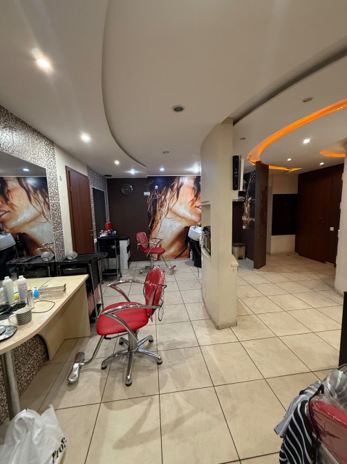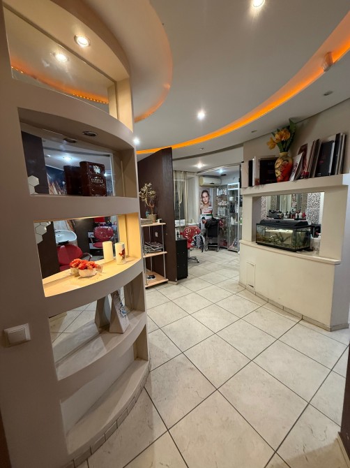 Планування - резепшн, просторий зал для перукарів, манікюрного кабінету, санвузол, комора та невелика кімната для зберігання інвентарю. 2 кондиціонери.