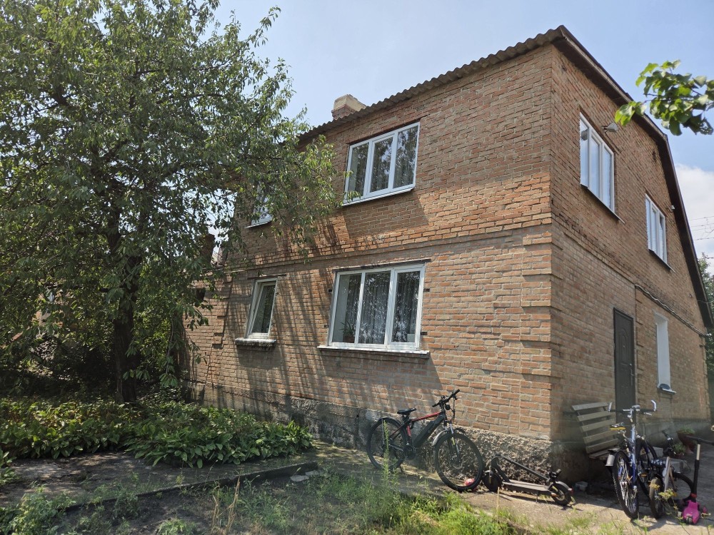 Продається будинок 86 м.кв., в с. Крехаів, вул. Деснянська (Гагаріна) 33, Остерська громада, Чернігівська обл.. Будівля складається з одноповерхової утепленоі дерв’яноі хати та двоповерхової цегляної ,між якими є суміжні двері. Має один суцільний дах з метало черепиці. Стара хата площею 42,8 кв.м. має дві кімнати, «сінці» (комора), веранда, також є дров’яне опалення – груба. Більш нова, цегляна хата, площею 42,9 кв.м., має два поверхи: три кімнати, сходи та тераса , є електроопалення на першому поверсі. Горище також можна перепланувати під ще одну кімнату. Загальна площа будинку 85,7 кв.м., земельна ділянка 0,3 га (з яких 0,25га земля загального користування). На територіІ розташовані сарай, погреб, санвузол (туалет) та велика літня альтанка. Будинок розташований в мальовничому місці – до річки 100м. Має газопостачання, електропостачання (двохзонний лічильник), скважина на воду 7м. Дальність від Києва – 45км.
