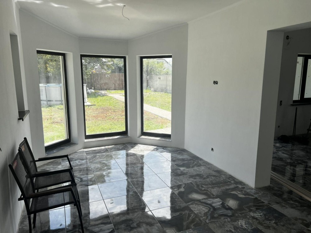Продам дом 118 м2 Высокий.Продам одноповерховий будинок у передмісті Харкова- п. Високий. Новобудова, по вулиці Санаторній, перехрестя з вулицею Райдужною, вулиця асфальтована та освітлена. Побудований в 2022 році, всі коммунікації під'єднані, 11 соток приватизованої землі. В будинку - все "під чістову обробку», опалення-«тепла підлога», в залі діючий камін, встановлено електро – та твердо- паливні котли. Загальна площа будинку 118 кв.м. В будинку 3 кімнати, кухня-студія , санвузел.Житлові кімнати 11 і 14 кв.м., кухня-студія 16 кв. м. з єркером, та санвузел 12кв.м. Можливо перепланування кімнат. Зала з каміном 50 кв.м. з панорамними видами через французські вікна. Площа земельної ділянки 10,7 сотки, огорожено європарканом.. На ділянці розташовані септик, дворове замощення, автоматичні розсувні ворота. Внутрешне оздоблення робимо під побажання кліента. Отримано дозвіл на будівництво гаражу та сауни. Поруч транспорт, крамниці, паркова зона, школа, лікарня, ринок. Коштує 112 т.у.е. АН NEO Format .