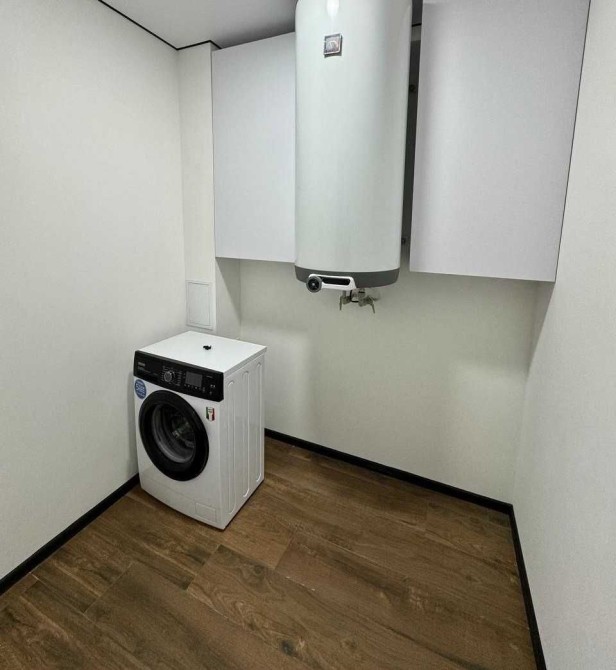 Первый этаж - кухня-гостиная, гардеробная, постирочная, санузел. Первый этаж полностью оснащен теплым полом.