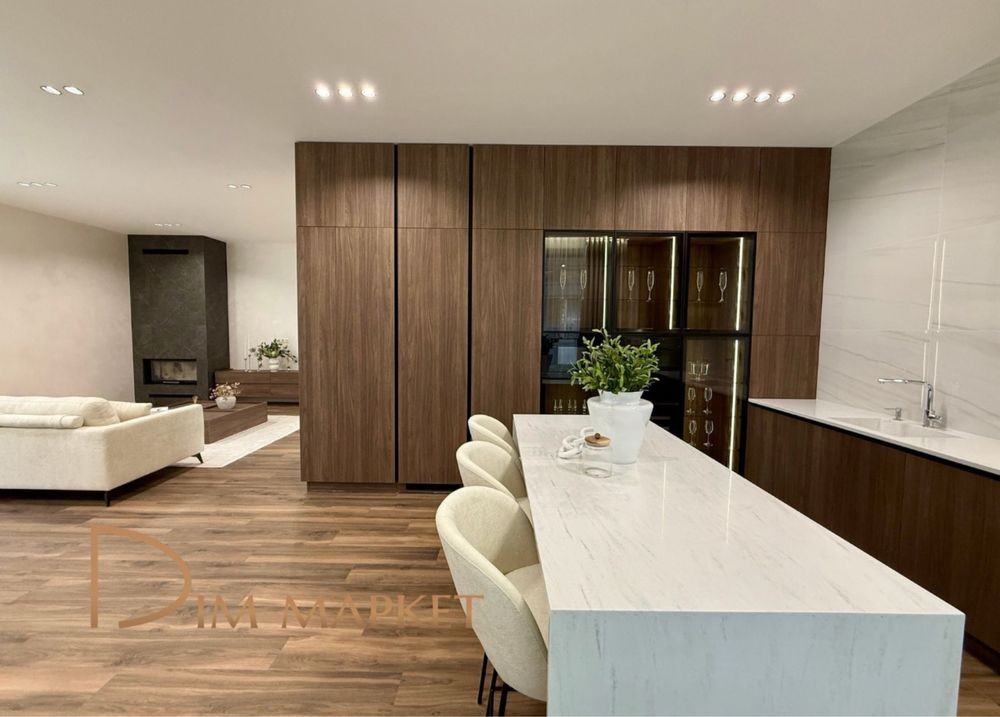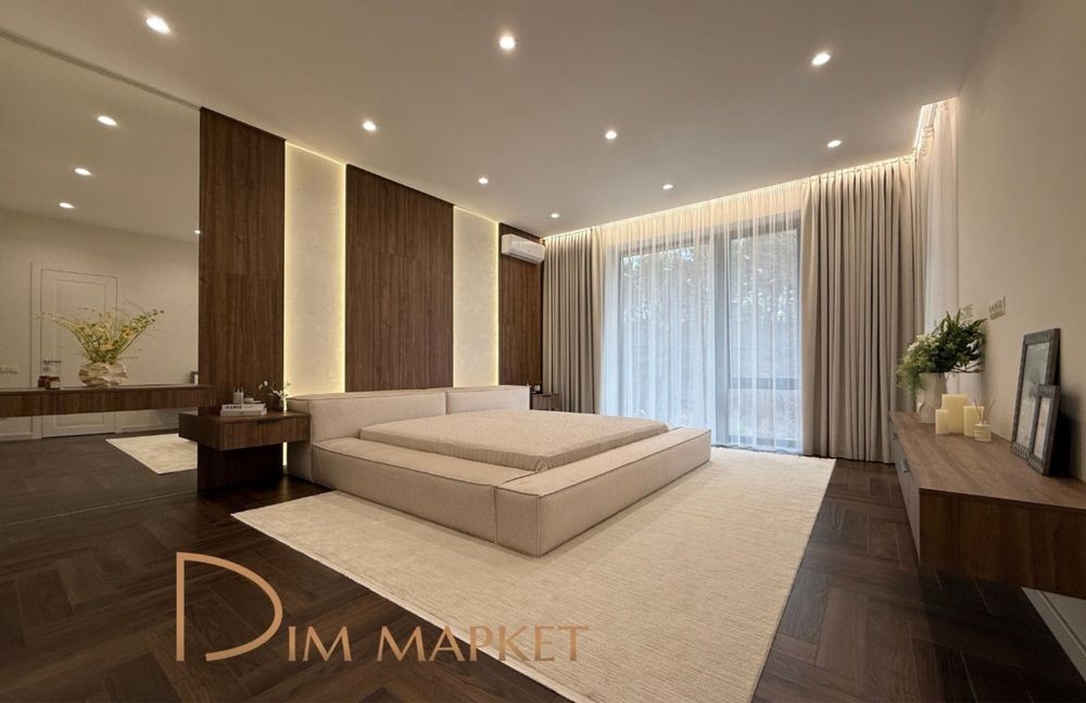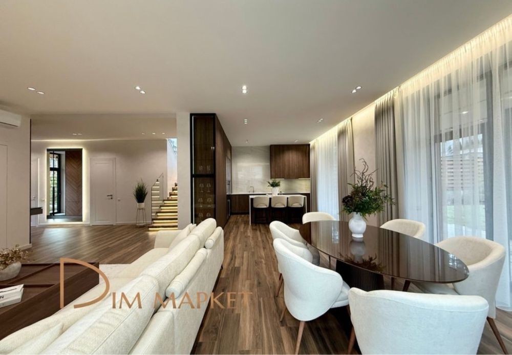 Комплектація: вишуканий ремонт, меблі, побутова техніка, стелі 3,3 м, камін, алюмінієві двері, вікна Salamander, автоматичні ворота, підсвітки терас та фасаду.