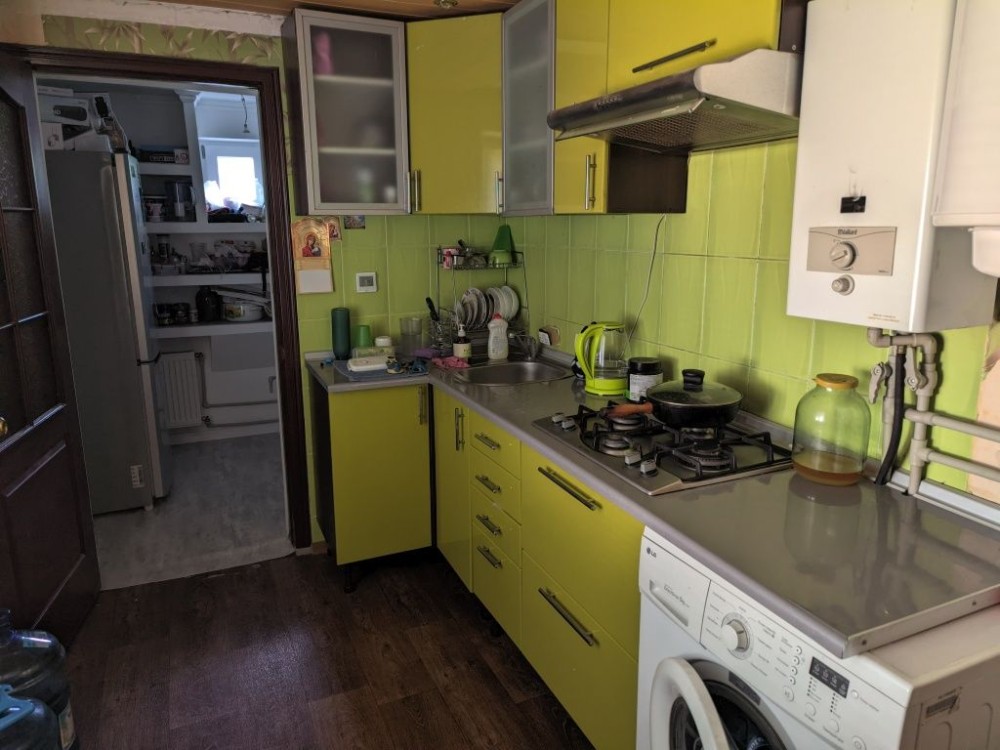 Дом с газовым отоплением, теплий пол, утеплен 100мм пенопластом и обштукатурен, погреб под землей, в погребе скважина, теплица, гараж 5м*8м висота потолка 3м, много плодовых деревьев, в доме отдельно печь, двухконтурный газовый котел, газовая колонка, електрический бойлер, в доме две спальни, большая прихожая, ванная с туалетом, кухня, кладовка и коридор. Дом очень теплый за комуналку зимой не больше 1800грн выходит.