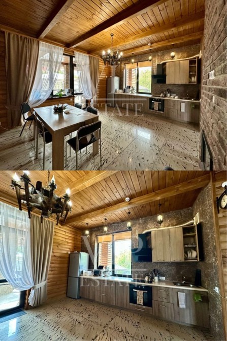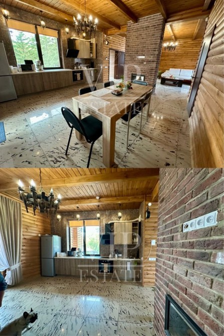Основной дом построен с пеноблока, утеплен. Фасад с наружи и внутри- деревянной отделкой.