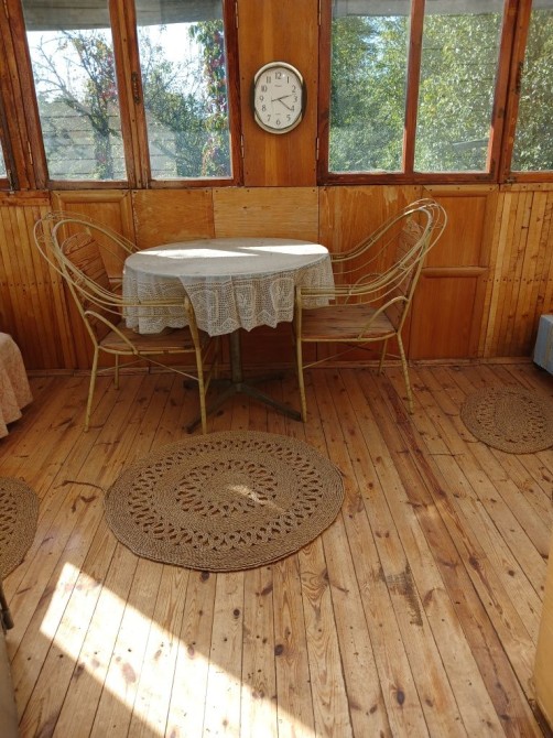 Сад,плодовые деревья. Все что есть на участке: груша, яблоня, орех, сливы, черешни две, боярышник СИНИЙ, вишня, абрикос, клубника. Два вида винограда. Хвойные деревья. Кустарники: смородина, крыжовник. Клумбы с цветами и огород, свой выход в лес. В лесу всегда собираемся грибы, терновник есть и поляны с земляникой.