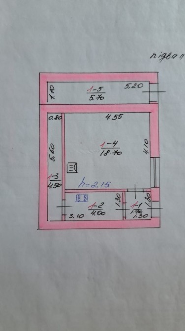 Высота потолка 2,60м.