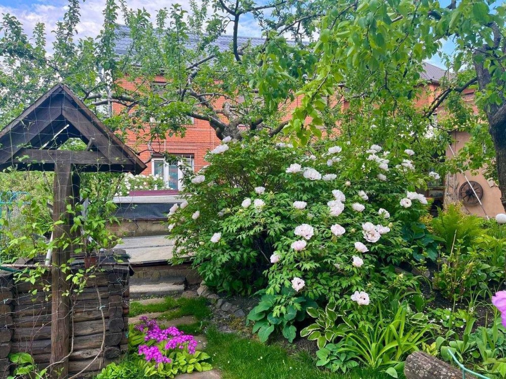 На ділянці із будівель: гараж, сарай, льох, свердловина, альтанка, зона барбекю, басейн. Безліч декоративних та плодових рослин, доглянута територія, ідеальна для відпочинку та усамітнення.