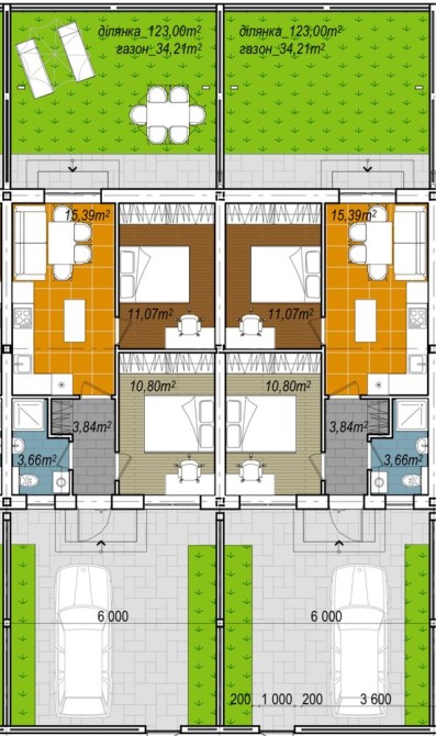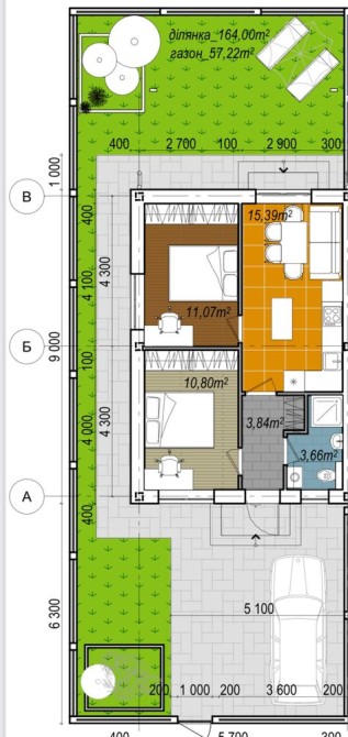 Свой участок: спереди место под авто, сзади — дворик.