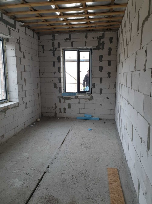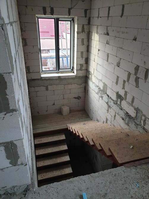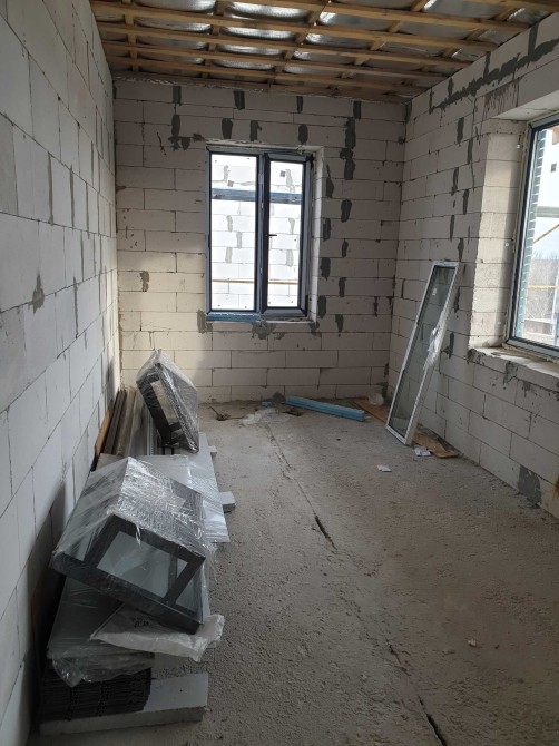 2 этаж-3 спальни, санузел, большой балкон. Дом построен из газобетона 400мм, крыша битумная черепица, лестница металлическая, в дом заведено электричество 20кВт, городская вода, канализация септик, газ проходит в 5м от участка.