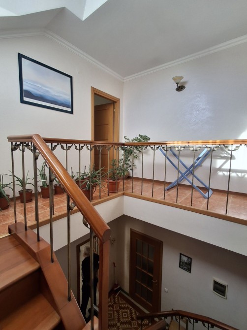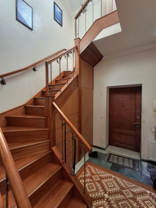 Между этажами надежная лестница , металлический каркас , отделка натурпльное дерево