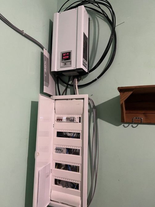 Газовый котел, стабилизатор, заведено 3 фазы, счетчик день-ночь.