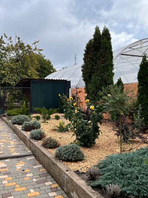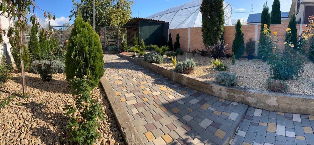 Двор плитка. Красивый участок с большим количеством разных растений. Асфальтированный подъезд. Развита инфраструктура. Рядом школа, магазины, кафе, остановка транспорта.