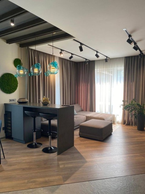 Выполнен дизайнерский ремонт с применением качественных и премиальных материалов.