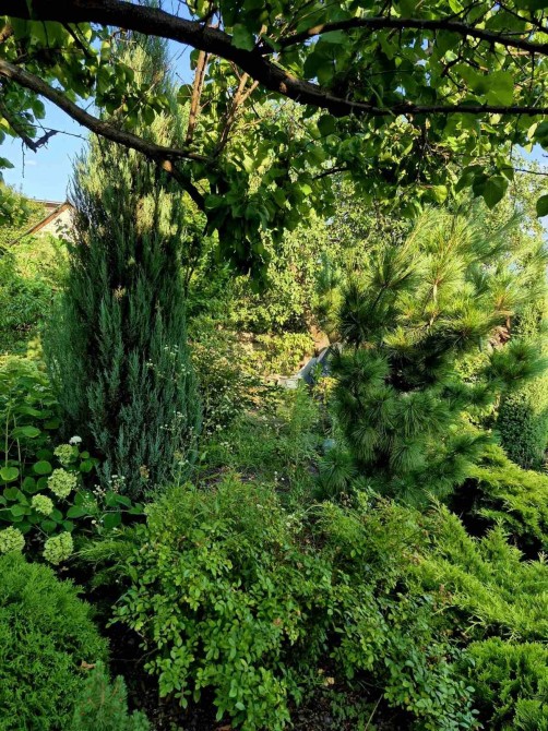 Здесь вас будут радовать туи, кипарисы, другие хвойные деревья.