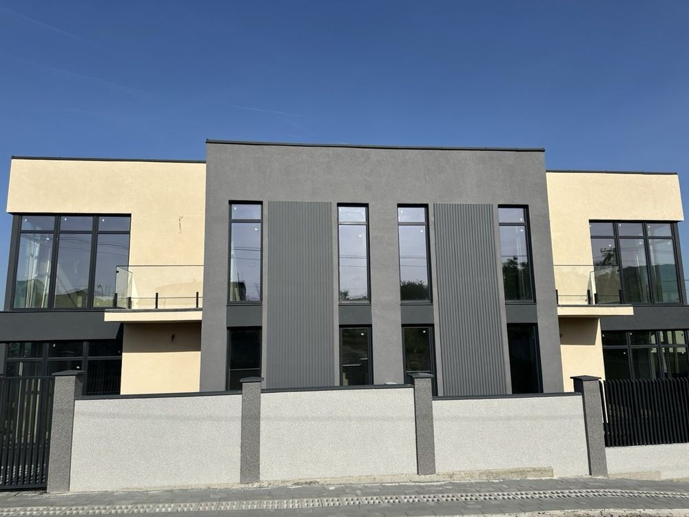 Дуплекс побудований на 6 сотках. Хороше розташування- у 500 м від міської лікарні. Розвинений район міста в безпосередній близькості до необхідної інфраструктури.