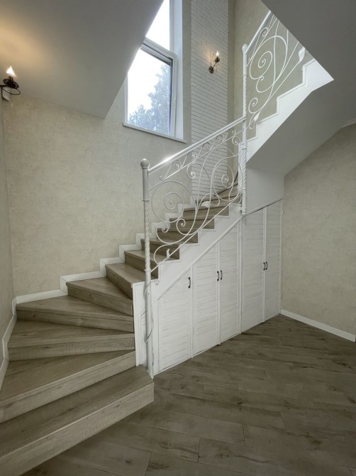 Побудований газобетон зверху пінопласт, Сходи бетон, теплі підлоги, сантехніка Grohe, велика тераса, сосни на ділянці.