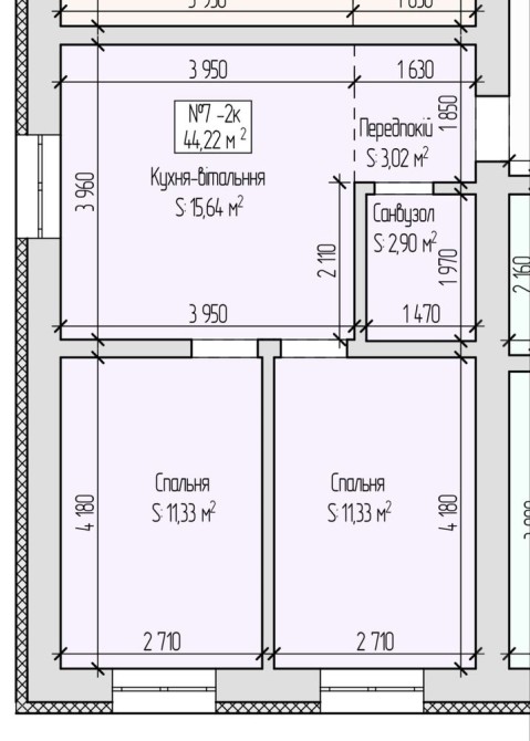 -Кухня-Студія й дві окремих кімнати
