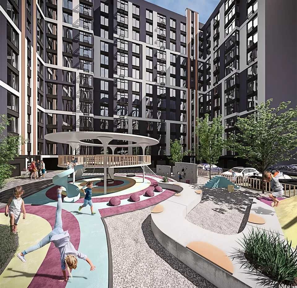 Двір закритого типу з власною інфраструктурою, також у дворі є дитячий майданчик, комфортна зона відпочинку