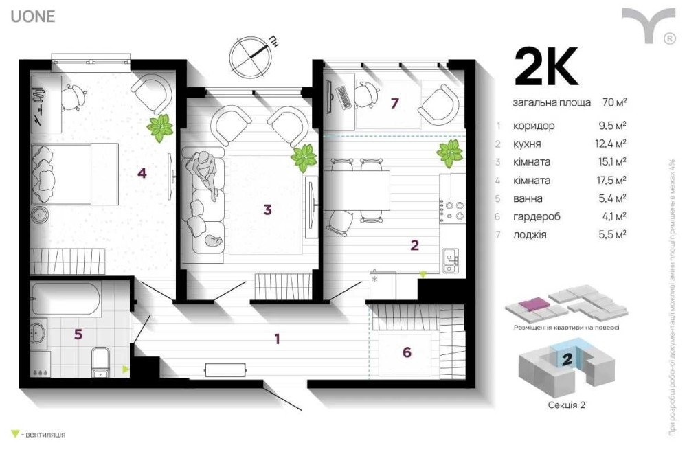 Площа квартири 70м2