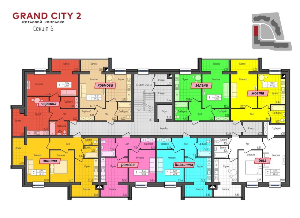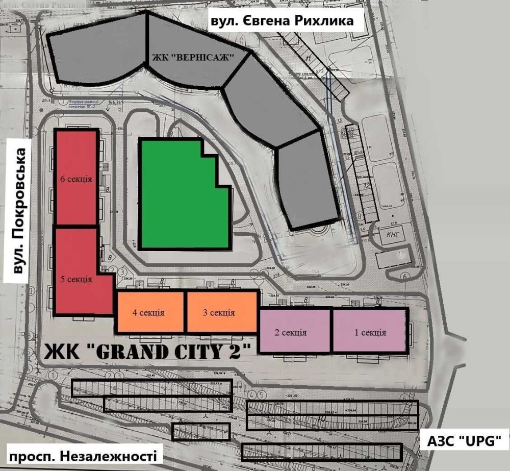 Новий комплекс «GRAND CITY 2» матиме все для комфортного проживання: двір закритого типу, відеоспостереження по всій території, окремо будуватиметься підземний паркінг з укриттям, дитячий майданчик, гаражні та комерційні приміщення, в пішій доступності ТЦ «Жито», ТЦ «Метро», поруч зупинка громадстького транспорту, не далеко школи, садочки, ринки, вїзд у комплекс передбачено з проспекту Незалежності. Повноцінна інфраструктура зробить проживання максимально комфортним та безтурботним. В наявності широкий вибір квартир з різноманітними плануваннями та можливістю придбання з розтермінуванням на 1 рік. Всі квартири з індивідуальним газовим опаленням, встановленими лічильниками на газ, воду, світло (день-ніч), якісні вікна та вхідні двері