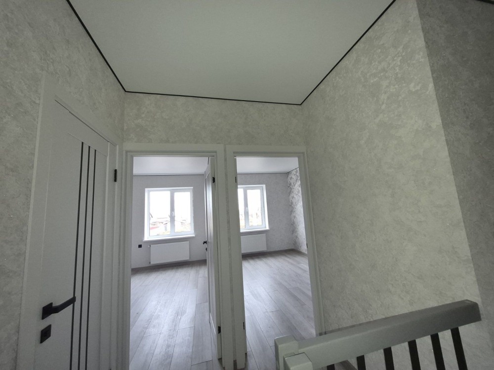 Площа будинку 68м2, простора кухня-вітальня, дві спальні, два сан-вузли. В будинку зроблений дизайнерський ремонт, тепла підлога, ламінат, якісні шпалери, встановлений котел. В будинок заведений газ, світло вода із свердловини, септик, асвальтований підїзд, власна ділянка 1,3 сотки землі, паркан. Також є можливість придбати квадродуплекс у чорновому стані.