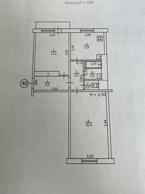 • Площадь кухни 7.9 м2