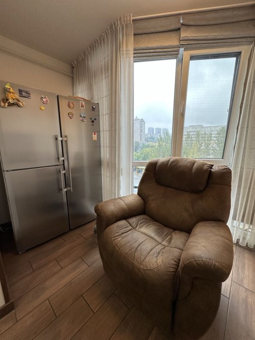 + Просторная кухня с огромным холодильником баркой стойкой и обеденной зоной.