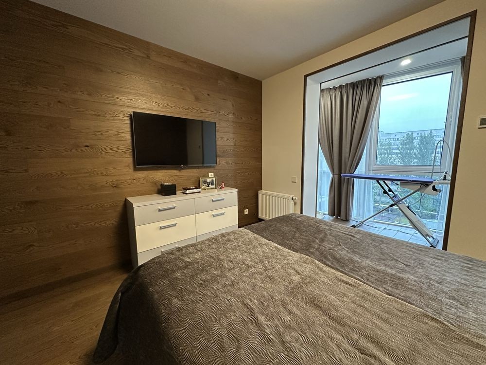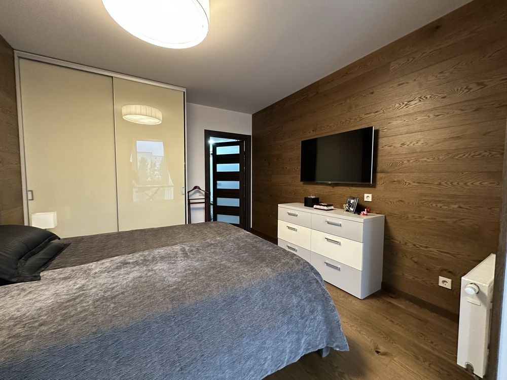 + Спальня – дорогая роскошная кровать с мягким изголовьем, вместительный шкаф,смарт ТВ
