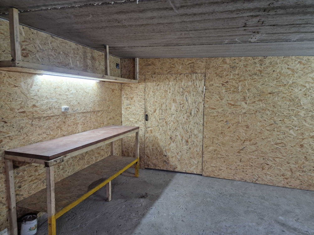 Сухий великий гараж з гарним перекриттям, зашитий листами ОЗБ. Перед гаражем відсипано асфальтною крихтою. Ціна 2500