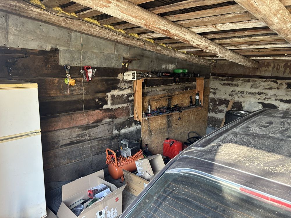 Гараж сухой(сделана крыша),размер гаража 6/5-машина помещается свободно и есть место для работы.