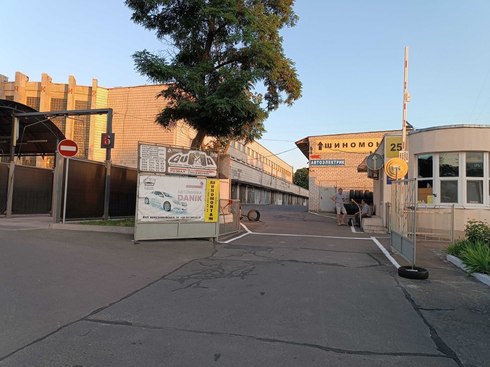 На території СТО, мийка.