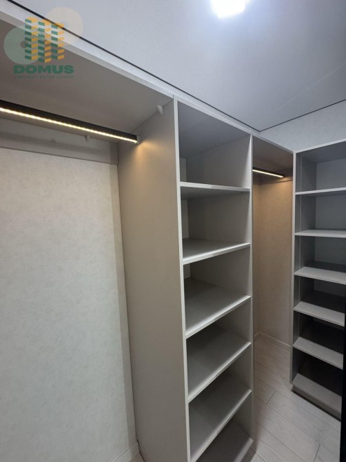 Очень светлая и просторная. Кухня 15кв.м. Холодильник встроенный. Спальня отдельная, укомплектована дополнительно шкафом. Макияжный столик, зеркала с подсветкой. Гостевая комната, гардеробная с удобными полками. В санузле смесители скрытого монтажа, душевая зона, поддон выложен с плитки, очень современно и стильно. Стеклянные витрины, с множеством подсветки в теплых тонах. Квартира светлая, теплая и уютная!