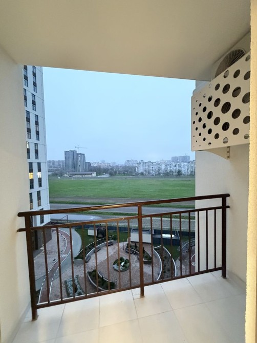 На кухне также установлен кондиционер и есть выход на балкон с видом на ипподром