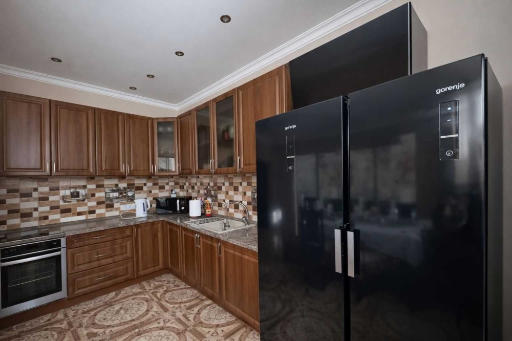 1 этаж: просторная кухня-гостинная с мебелью ручной работы и дорогой техникой.