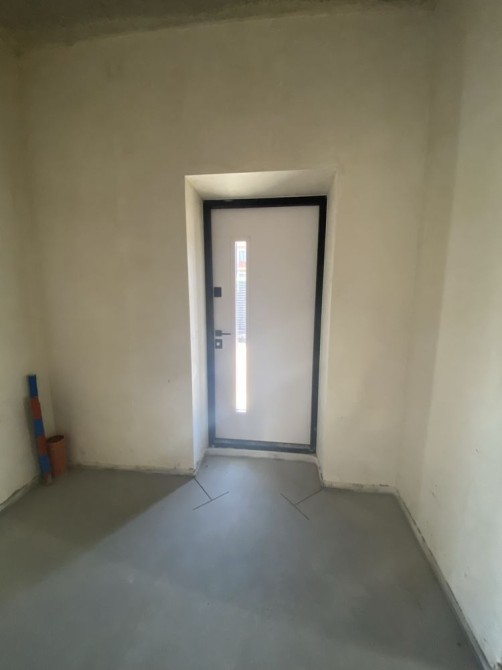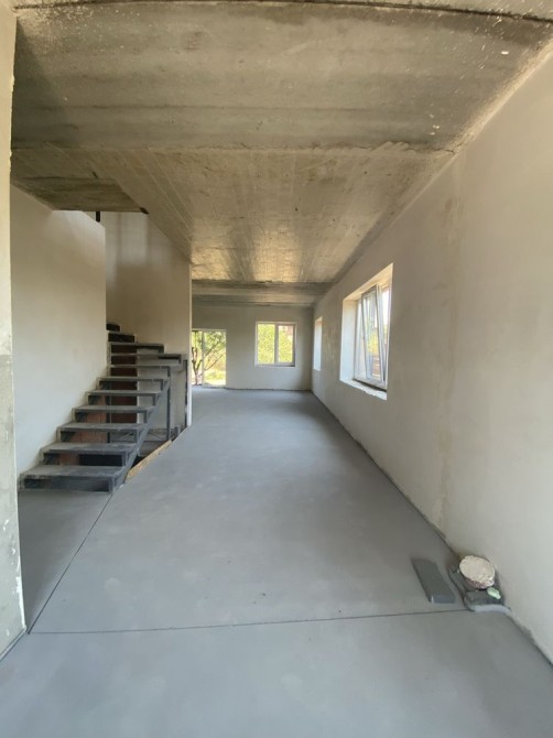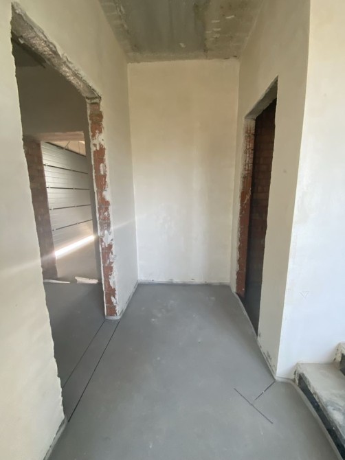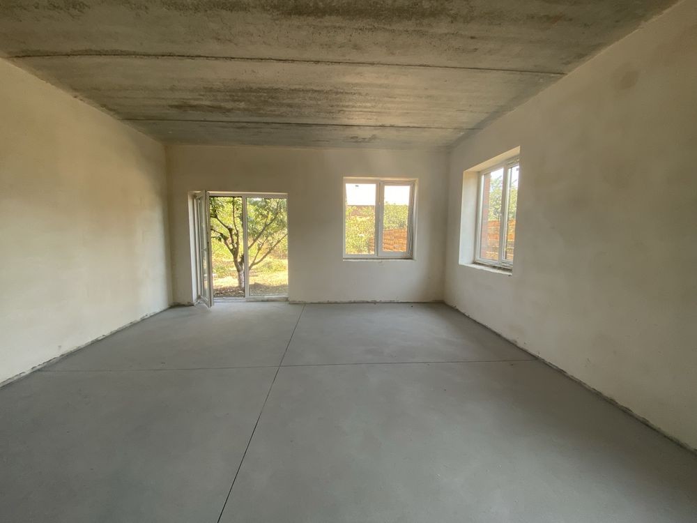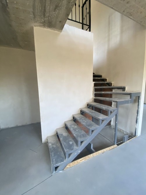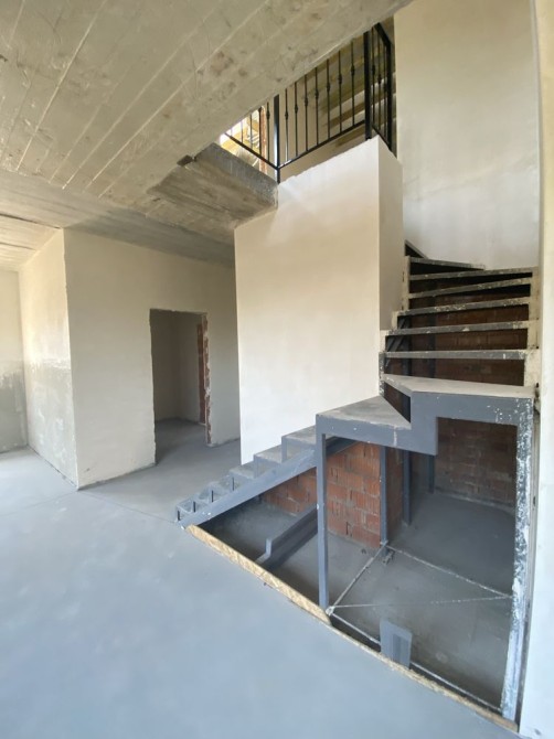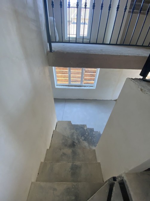 По состоянию стяжка полов,штукатурка стен,уже готоапя планировка,разводка всех коомуницаций и систем,установленные лестница и окна.