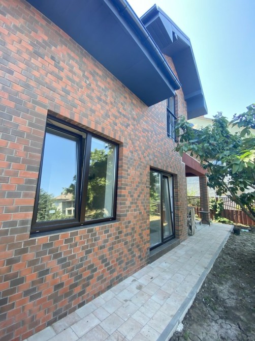 Дом построен из качественного полого кирпича и облицован клинкерным кирпичём.В дом заведены элнектричество,канализация и вода.Газ проходит по улице.Есть проект.Ж\б плиты перекрытия.Кровля:битумная мягкая черепица.Утеплённая.Использованы пропитанные специальным раствором стропила.На втором этаже мансардные окна Фавро(специально подготовленный материал-пропитанное дерево.Металлическая удобная лестница между этажами.Установлены очень качественные окна.Отливы керамогранит.Забор с фасада металлопрофиль с кирпичными столбами,по бокам деревянные ламели с металлическими столбами.Двор с фасада в тротуарной плитке.