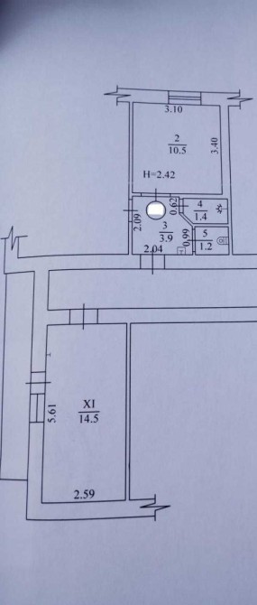 • Площадь кухни 2 м2