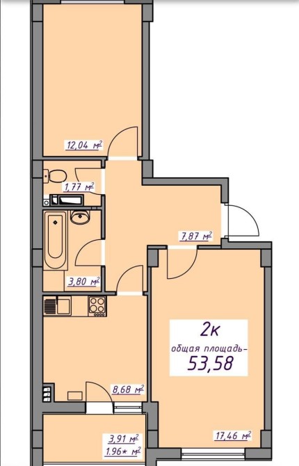 • Общая площадь 53.5 м2